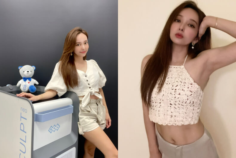 平常做重訓、仰臥起坐或平板式核心運動,愛紗說主要都是練上腹肌,想要上腹肌練出線條比較容易,但「下腹肌」這塊超難練!愛紗說:「女生比較容易有小肚子,要練下腹超級超級難~後來我就去做了Emsculpt Neo熱磁減脂,比起上一代躺著練腹肌,它更多了可以加速代謝脂肪的功能,做的時候感覺溫溫熱熱的,腹部也會被『揪起來』,療程約半小時但溫熱感會持續到2小時,這段時間就是一直在幫你加速代謝多餘脂肪,做完第2天就超級有感!下腹部變得又平又緊!我總共做了4次,大推四肢瘦但胖肚子的棉花糖女孩可以試試!」