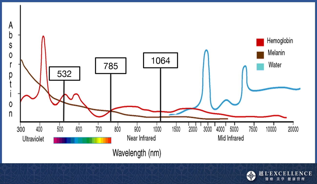 PicoSure Pro鉑金皮秒雷射以單波長755nm;PicoWay超皮秒雷射,則是雙波長1064nm532nm不同波長。