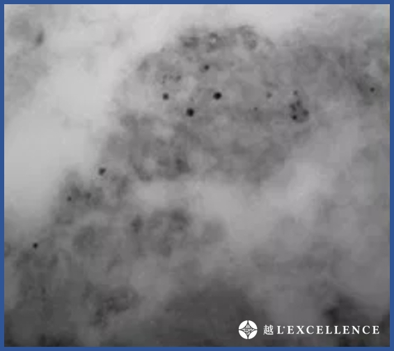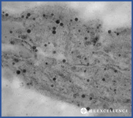 傳統雷射治療後,黑色素呈顆粒狀態。