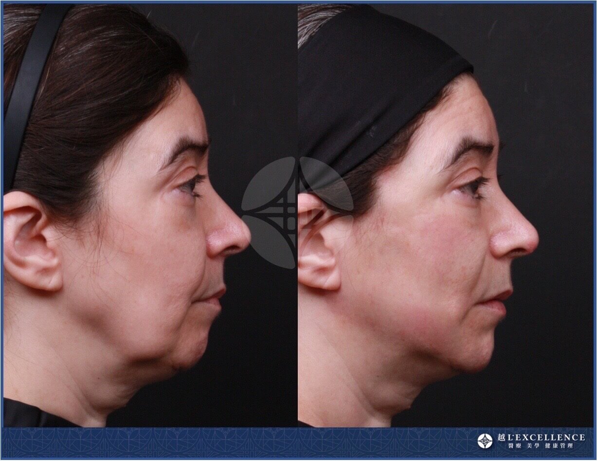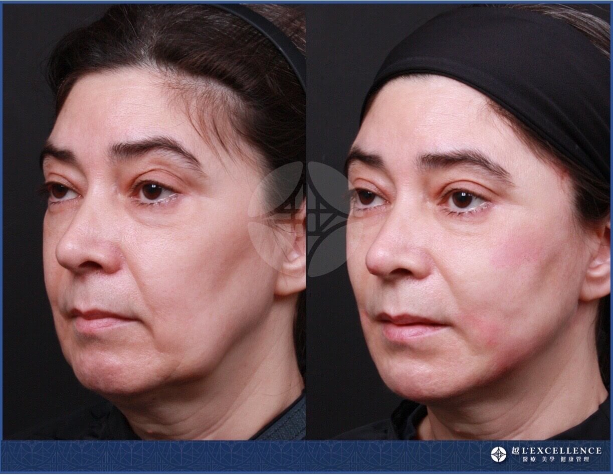 此院內案例為複合式埋線分享,藉由100%合法安全拉提線材MINT LIFT拉提線產品,搭配少量的玻尿酸定點拉提施打,改善隨時間老化產生的嘴邊肉、雙下巴、法令紋、木偶紋等鬆垮狀態,達到位移組織復位,不僅免開刀,更藉由微創技術塑造完美輪廓線條。