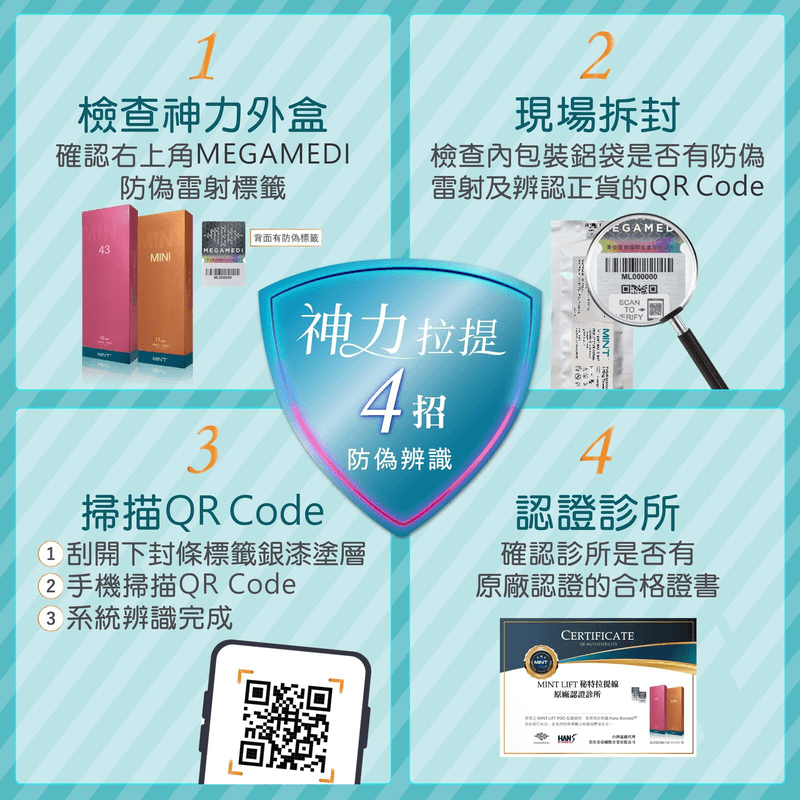 專利線材韓士秘特MINT LIFT拉提線,為近期美國FDA及台灣TFDA都核准通過新一代埋線線材,韓士秘特拉提線(俗稱秘線拉提/神力拉提):MINT LIFT(Minimal Invasive Nonsurgical Thread Lift),不但合法核可使用於臉部肌膚拉提,秘特線材本身擁有多項特色及專利,目前穩霸韓國及多國的 線材市佔率,於2021年11月在台核准上市。MINT LIFT 神力拉提非常重視安全與合法,不僅得到大先進國家專利認證製成技術,也是目前全球唯一擁有美國FDA、台灣衛福部TFDA認證以及七國認證的臉部拉提線材 ,一體成型的專利印壓技術,經實驗證明,神力拉提力道多於傳統切割線材400%,讓變美更安全又有效。