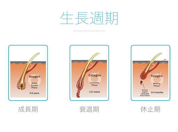 毛髮有分成生長期、衰退期、休止期,在生長期的毛囊內有豐富的黑色素,而休止期以及衰退期的毛囊內的黑色素減少,所以雷射作用效果就差強人意。不同位置的毛髮生長週期會不太一樣,腋毛的週期大約是三個月,腳毛的週期則是六個月。所以不同位置建議的治療間隔時間也會稍有不同。
