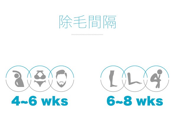 腋毛、鬍子、比基尼毛髮建議4-6週一次,而手毛、腳毛,軀幹上的毛髮則建議6-8週一次。