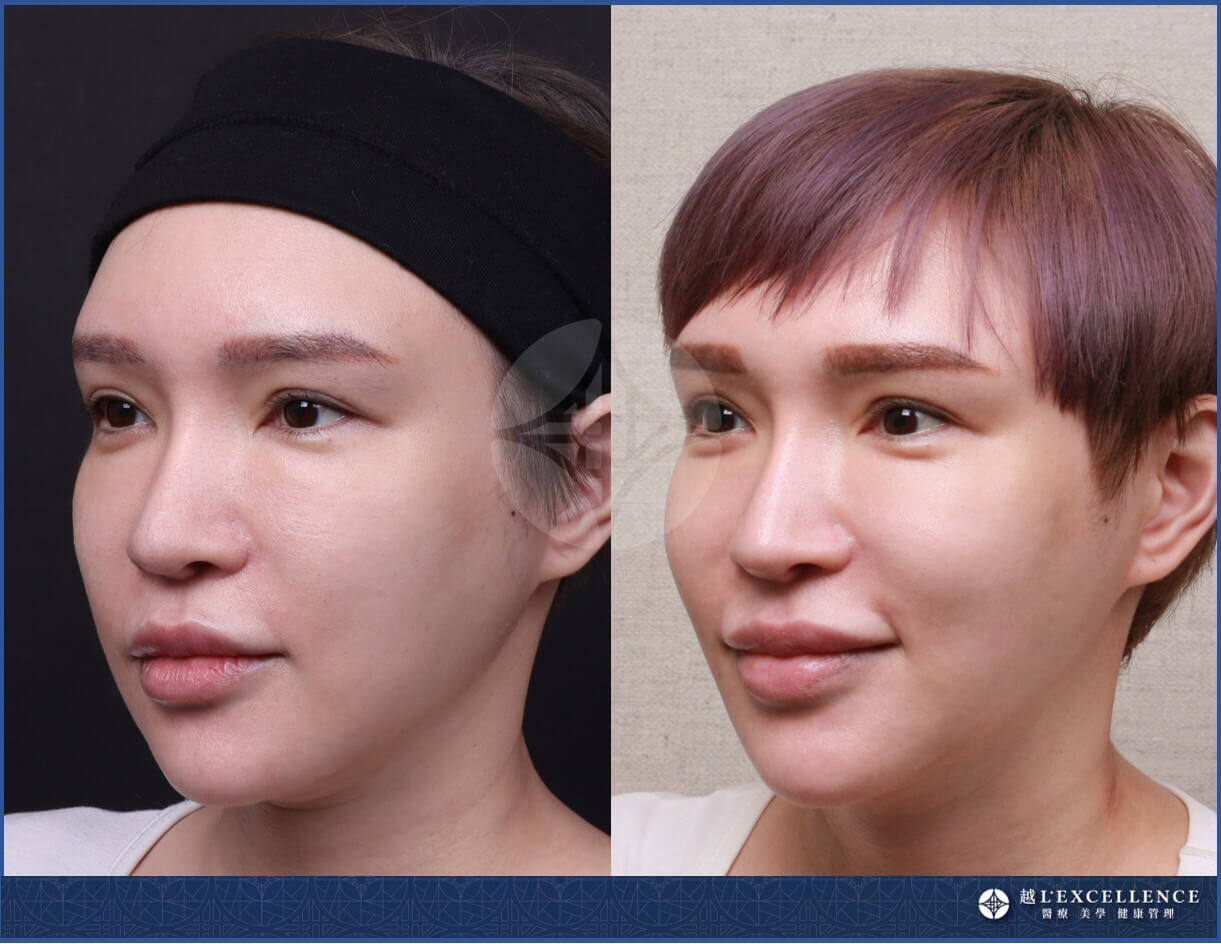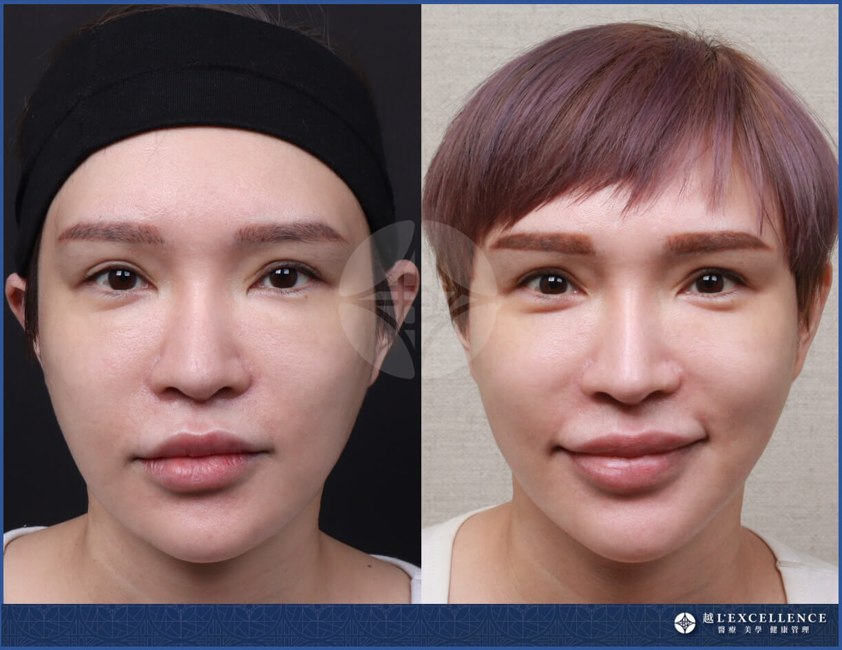 此案例針對下半臉臉型輪廓處,由魔女電波進行治療。此外,中上臉部搭配鳳凰電波偕同治療,令面部輪廓更加緊緻有型。術後三個月的回診實際拍攝。