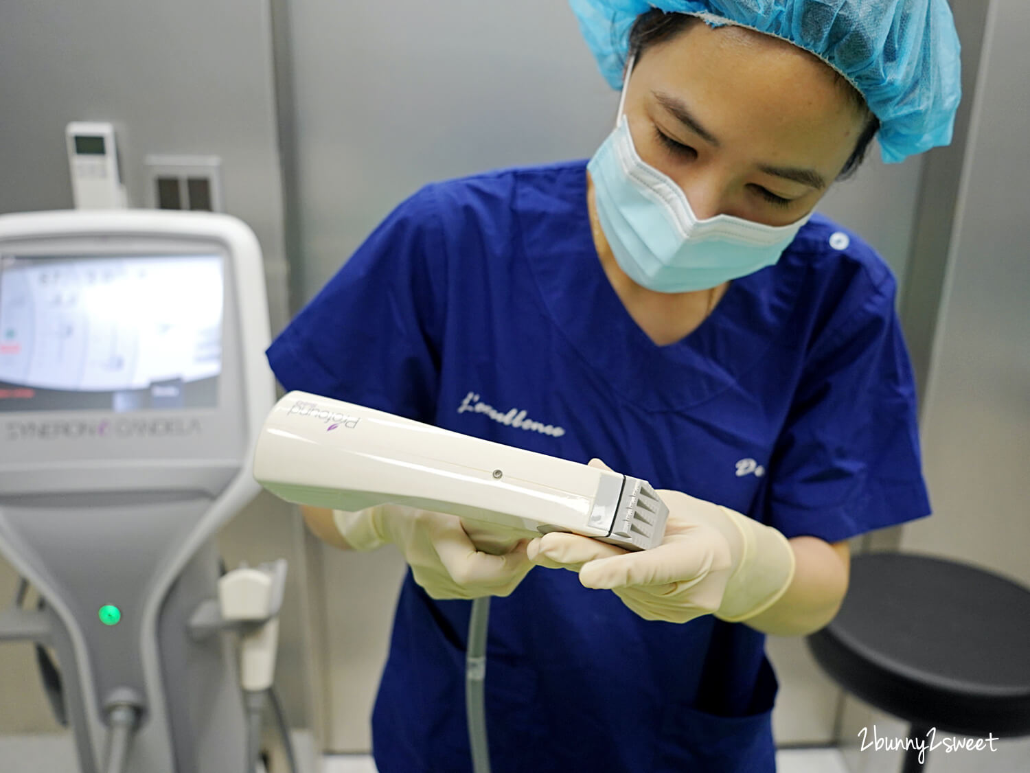 張醫師真的非常細心診察,會依照不同部位的不同問題來決定要用哪種探頭~針對兔兒麻最煩惱的肚臍周圍紋路、下腹部妊娠紋、側腰和剖腹傷口週邊鬆弛來加處理。