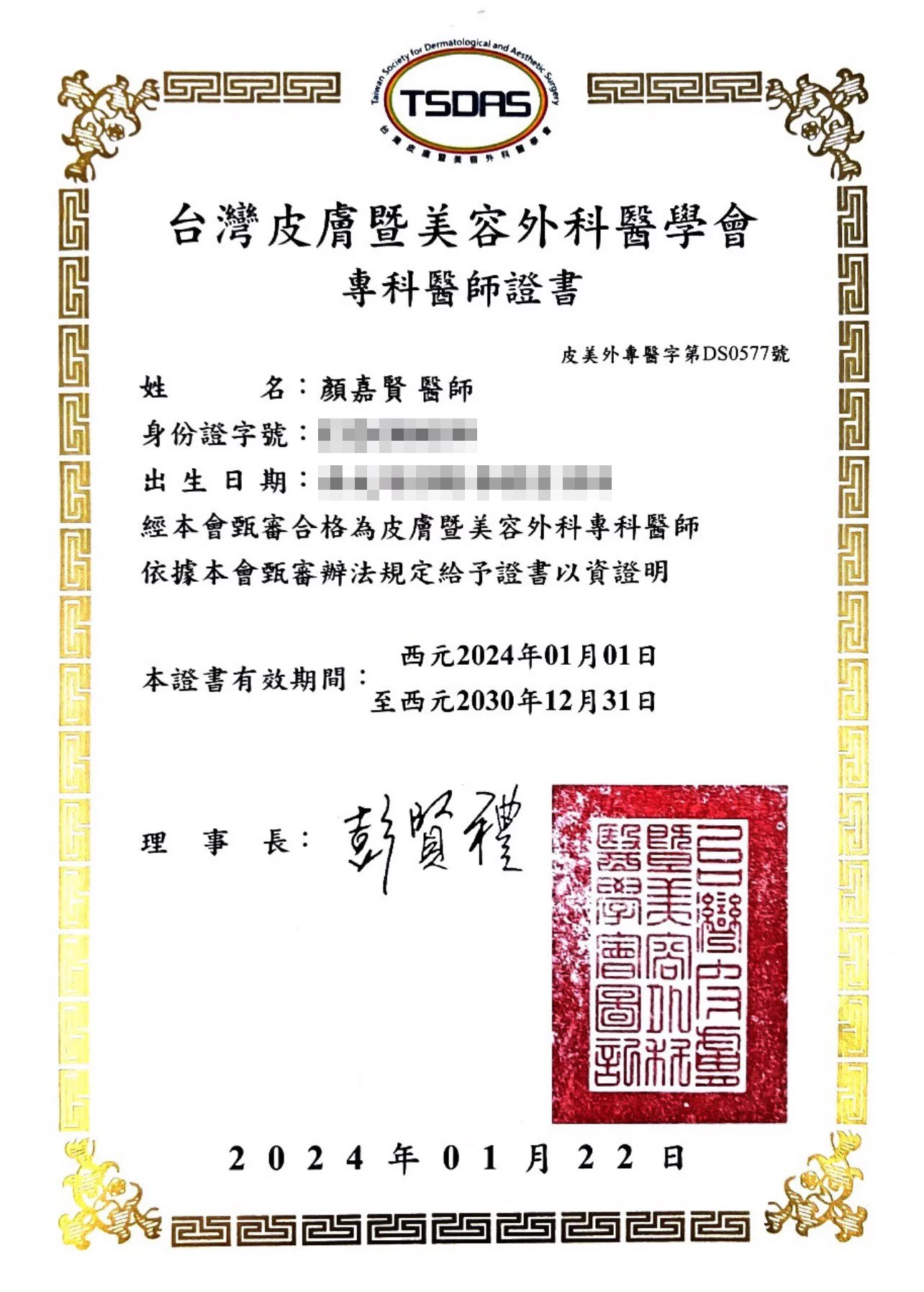 臺灣皮膚科醫學會會員