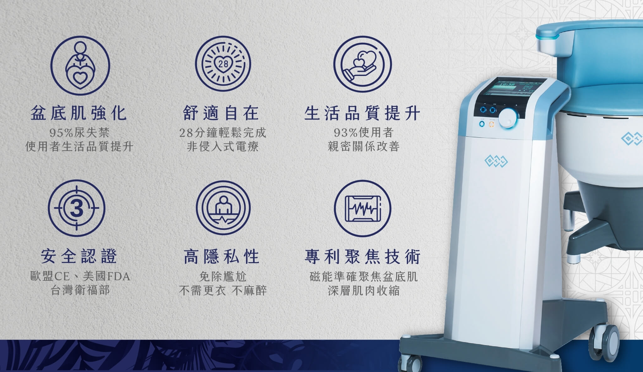 Emsella男女盆底肌強化 擁抱幸福新趨勢中文名稱:倍達樂非侵入式治療裝置。英文名稱:BTL EMSELLA non-invasive therapeutic device。衛部醫器輸字第032223號。來自英國 Emsella利用醫療級專利HIFEM科技針對人體盆底肌運動收縮,在28分鐘內鍛鍊肌肉高達12000次的訓練效果成為男性與女性改善盆底肌軟弱無力的新趨勢,也是全球醫療上提升盆底肌肌肉群強度的新設備 。 作用原理 Emsella 幸福椅以HIFEM高能量聚焦磁能科技,有效治療鬆垂與弱化的盆底肌。Emsella 幸福椅(倍達樂非侵入式治療裝置),又稱為幸福椅,其治療原理為利用高強度聚焦電磁技術(HIFEM)刺激骨盆底深層肌肉並恢復神經肌肉控制能力,高度聚焦電磁能量可以深入整個骨盆底區域,1次療程就能完成1萬多次盆底肌超極限收縮(Supramaximal contraction),達到盆底肌的強化及尿失禁治療。 Emsella 幸福椅療程不僅針對盆底肌較弱的男性與女性,更多是沒有意識到重視盆底肌,並強化盆底肌的狀態是會隨著年齡,老化,壓力而失去張力造成身體功能問題,進而影響到心理,然而預防勝於治療的觀念已經不再只是針對疾病本身,更廣泛的被提升到身心狀態與生活品質。幸福椅不只是醫療,更是盆底肌預防保養的健康行為,也是解決現代人生活忙碌無暇愛護盆底肌的科技工具,更是提供專業,精準,確實,有效的盆底肌強化儀。 盆底肌4大重要性? 盆底肌肉支撐骨盆底的肌肉群,如同一張「吊網」,尿道、膀胱、陰道、子宮、直腸等臟器被這張網緊緊吊住。 盆底肌鬆弛原因 年紀增長、懷孕分娩、多產、更年期荷爾蒙變化、缺乏運動、男性接受前列腺癌手術、體重過重、長期便秘、經常提取重物、慢性咳嗽等,除此之外,盆底肌群的感染、發炎、外傷或是過度牽扯肌肉都可能使肌肉組織發生變化。 無痛 . 無傷口 . 無恢復期 . 零尷尬重拾自在生活與人生只需輕鬆一坐!非侵入性,舒適自在的療程 不尷尬 很安心28分鐘治療不需要脫褲,治療過程舒適無痛,無傷口,返家無須照顧,無恢復期,一週 2 次療程,一共 6 次。 Emsella G動師美學院 菁英班-張瑋庭擔任授課講師張瑋庭醫師透過自身經驗與體驗,探究關於骨盆底肌肉無力的治療方式,並以輕鬆的互動方式達到知識性的交流。藉由非侵入性的Emsella G動椅儀器來輔助訓練骨盆底肌,可以有效改善因肌肉無力造成的不便,間接提升生活品質。藉由講課過程更精進每一位G動師們,能達到更專業的與消費者提供正確資訊! 影片分享 其它呵護項目 Forma V 蝴蝶電波 黛娜蜜私皇后雷射 微創陰道緊實手術 微創陰唇美型手術 女性賀爾蒙調理 常見問與答 你是以下族群嗎? □ 產後媽媽□ 更年期婦女□ 有頻尿或漏尿困擾□ 輕度骨盆腔器官脫垂□ 子宮或攝護腺手術後□ 有慢性骨盆腔疼痛問題□ 無法正確執行凱格爾運動□ 想改善不舒適的親密關係□ 想要強化盆底肌群 療程過程中的感受是甚麼? 整個過程是舒適自在不會疼痛,治療時不需脫衣,你僅需要坐在幸福椅上即可開始進行療程,過程中會有部分的人感受如下:1.有些微感受到盆底肌肉收縮緊緊感覺。2.自覺肚子有悶脹、刺刺、麻麻像電到的感覺。3.少部分人是沒有特別有任何感受。依據每個人的身心狀況與盆底肌的強弱關係,會有不同感受都是正常的。 治療是否需要麻醉? Emsella幸福椅為非侵入式治療,過程中可感受到盆底肌的刺激及收縮,不會有疼痛感,不需麻醉。治療過程若有不適可隨時向醫護人員反映。 治療時間及療程為何? 單次治療28分鐘建議一周2次,供治療6次。實際治療時間及次數以醫師評估規劃為準。 多久可以感受到效果? 多數人在治療1~2次後即有明顯感受,且在未來的幾周持續改善。部分盆底肌較虛弱之患者,則需要3~6次的治療後可感受到效果。 療程後能維持多久? 臨床研究顯示治療後5-6個月,仍有75%的患者仍維持良好盆底肌效果,而健康生活預防保養亦是效果得以持久的重要關鍵。 治療前注意事項 治療前都須由醫師評估是否適合治療,醫師會依您的需求給予適當的療程規劃。若你有以下病症,則不適合接受治療:□ 戴有心律調節器或其他電子、金屬植入物。□ 懷孕、出血性疾病、心臟病、肺功能不全、惡性腫瘤、發燒患者。□ 治療部位有發炎、感染、出血等症狀者。 治療後的注意事項 多數人治療後無恢復期,可立即恢復正常生活。僅有少數治療後可能有肌肉酸痛、暫時性肌肉筋攣…等現象均屬於正常之副作用,一般於短期內就會緩解。 越L’EXCELLENCE提醒您:此文章圖文內容僅使用於醫療資訊傳播用途,以上內容所刊登照片皆為院內實際治療經驗內容,並經本人同意使用。此外,任何療程皆有其風險,且成效因人而異,實際治療內容與改善程度請與醫師面對面評估。