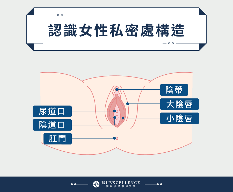 女性私密處可以分為外陰部和內陰部(陰道),兩者並不是同一個部位,概念上有點像是臉部和口腔的關係,需要的保養方法也不一樣,以下就用圖片,帶大家更進一步了解私密處的構造。
